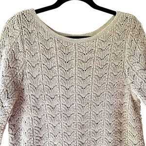 J JILL | NWOT MARLED LACE KNIT COTTON SWEATER BOATNECK COBBLESTONE | SMALL