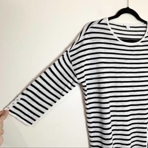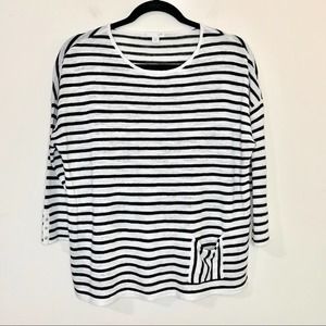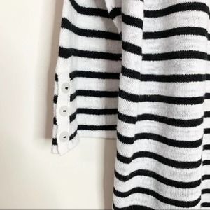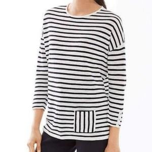This is a gently used women's J. Jill linen blend top in a black and white nautical stripe.
