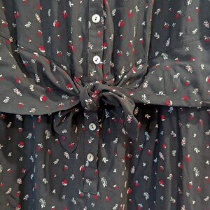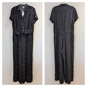 J. JILL Nwt Red Ditsy Floral Jumpsuit M Wide Leg Pockets Tie Waist Button Shirt