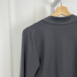 Open front, long sleeves, slightly boxy fit. Soft, stretch rayon jersey knit in gray.