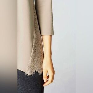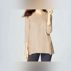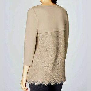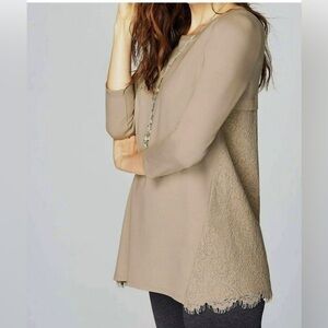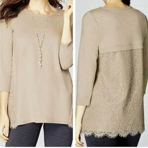 J. JILL POINTE KNIT TUNIC DRESSY LACE TOP BACK BEIGE