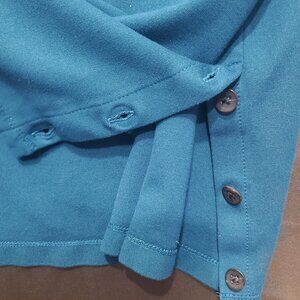 J. JILL PONTE Women Blouse SZ XL Teal Button Sides 3/4 Sleeves Soft Stretch