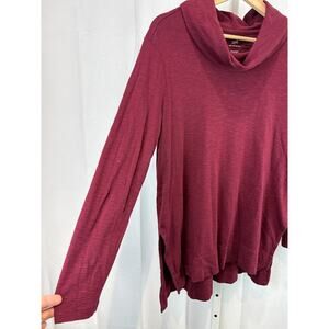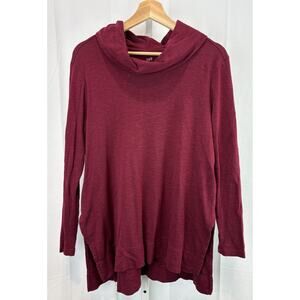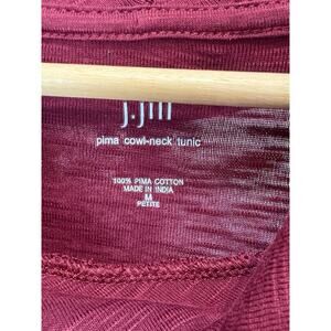 J. JILL Petite M PM Pima Cowl Neck Tunic Top Long Sleeve Side Slit Wine Red