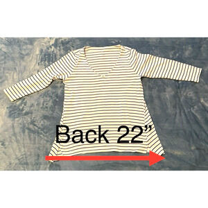 J JILL Petite S Black White Stripe 100% Pima Cotton 3/4 Sleeve V Neck Knit Top