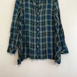 J. JILL Plaid Dipped Hem Button Up Tunic Blue Green Lightweight Button Down S