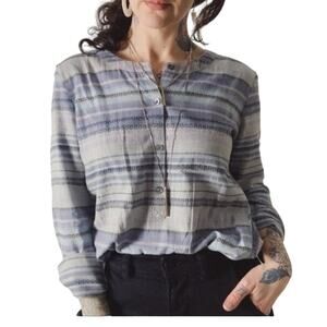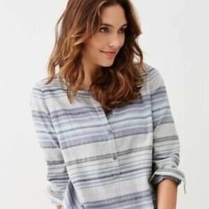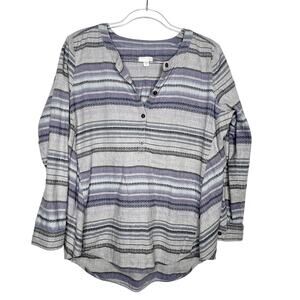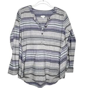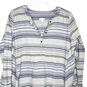 J. JILL Popover Tunic Button Down Shirt Henley Aztec Striped Blue White Size S