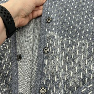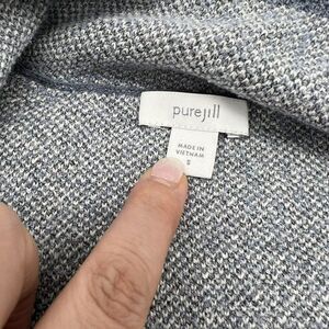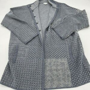 J JILL Pure Cotton Knit Blue White Sweater Coat Jacket Coatigan Small Oversized