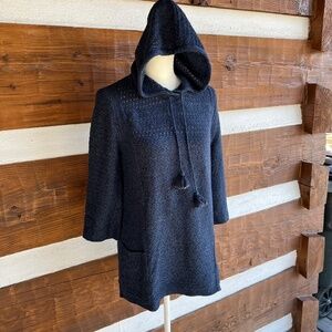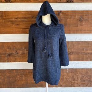 J. JILL Pure Jill Blue Hooded Sweater, Tassels, Pockets, 3/4 Sleeves, XS