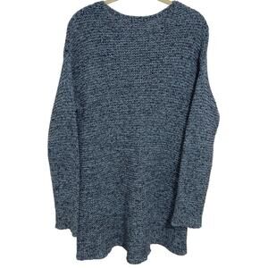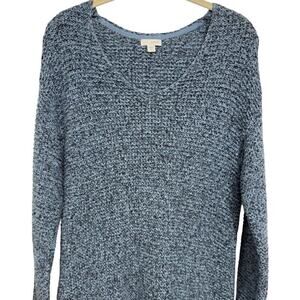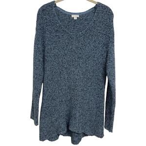 J. JILL Pure Jill V Neck Cotton Elliptical Hem Tunic Sweater Blue Soft Knit