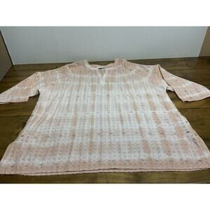 J. JILL Pure Jill XL Tunic Blouse Schiffli Eyelet Cotton Tunic Peach