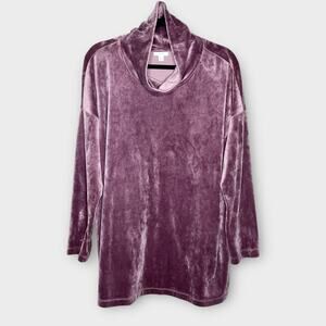 J. JILL Pure Jill rose taupe (mauve) velour cowl mock neck tunic top size XL