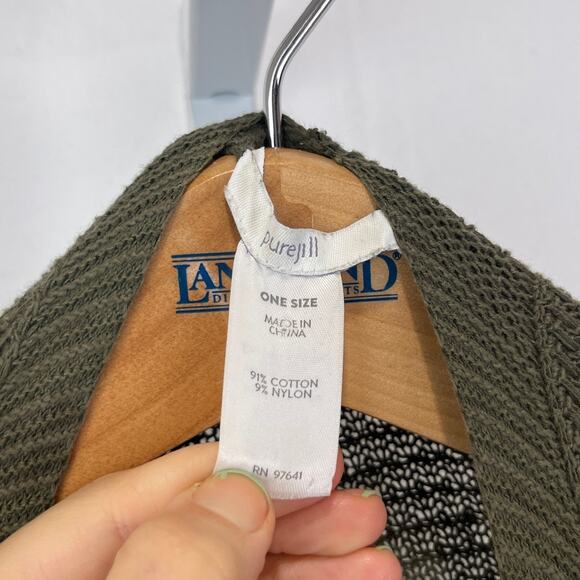 J. JILL Pure Open Front Wrap Cardigan Sweater Draped Kimono Cape Green One Size