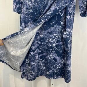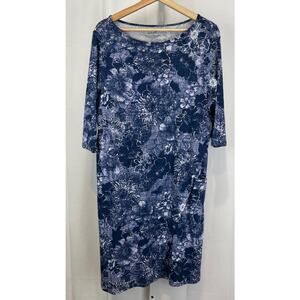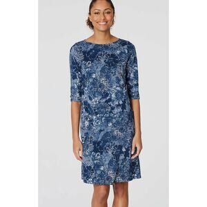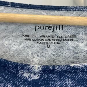 J. JILL PureJill Wrap Style Dress Floral Print Cotton Modal Jersey Blue Size M