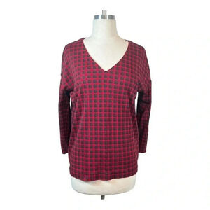 J. Jill Red Supima Cotton Check Print Long Sleeve Tunic, buffalo plaid, V-neck, 100% supima cotton, long sleeve, excellent condition, size medium petite.