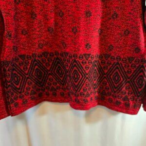 J JILL RELAXED RED BLACK PULLOVER SWEATER JACQUARD BORDER SIZE LARGE SOFT COTTON