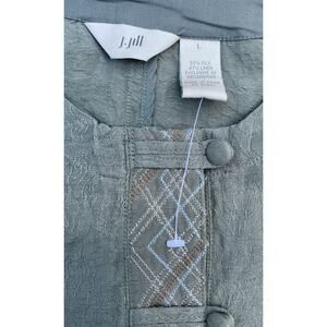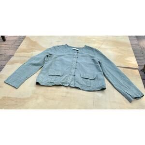 J. JILL Silk & Linen Casual Cropped Button Up Jacket Blazer Women's Gray SIZE L