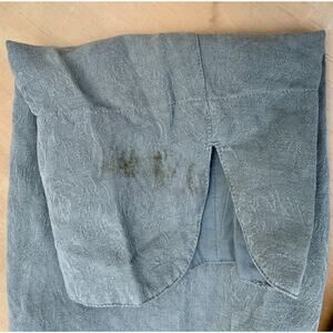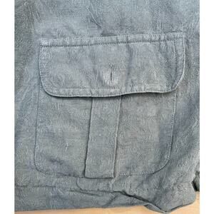 - Embossed Floral Design- 2 pockets in front- Double cuff sleeve- Cloth buttons- 53% Silk 47% Linen- Minimal stains on the sleeves but garment is in good condition- Made in China