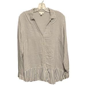 J. JILL Size M Skinny Striped Blue & White Top Button Down Shirt Rayon