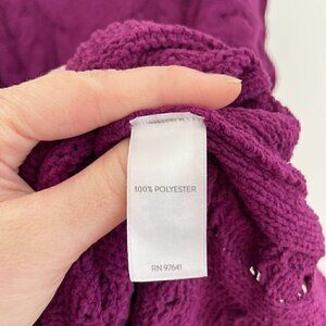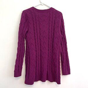 J. JILL Split Neck Chenille Tunic Sweater Solid Purple Chunky Cable Knit Large L