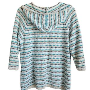 J. JILL Sweater Size Full Zip Hooded Linen Blend Blue White Sz LP