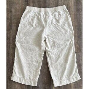 J. JILL Sz 12 Petite Beige Tan 100% LINEN Elastic Back WIDE CROPPED LEG Pants
