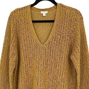 J. JILL TEXTURED OPEN STITCH V-NECK SWEATER GILDED COIN Large