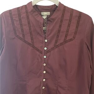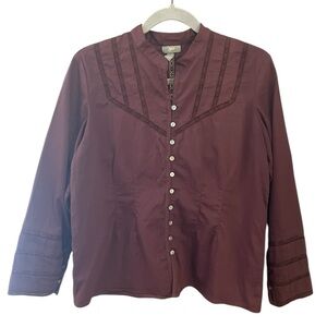 J. JILL Top – Cotton Stretch Button-Up, Burgundy, Sz XS, Excellent