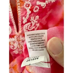 Tags embroidered tunic, boho peasant top, tie-dye shirt, pink orange cotton top, lightweight spring summer blouse, festival top, casual vacation wear, artisan embroidered blouse, resort wear, Resortwear, artsy