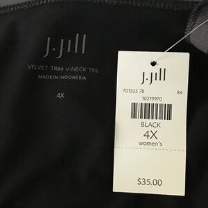J. JILL Velvet Trim V-Neck Tee Long Sleeve Cotton Black NWT Women’s Plus Size 4X