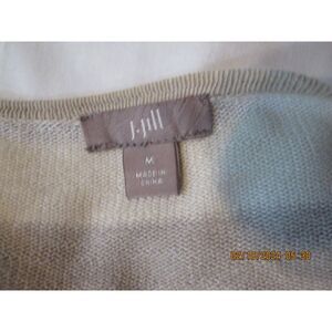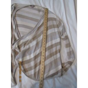 J. JILL WATERFALL OPEN FRONT CARDIGAN SIZE M TAN GREY CREAM STRIPED LIGHTWEIGHT