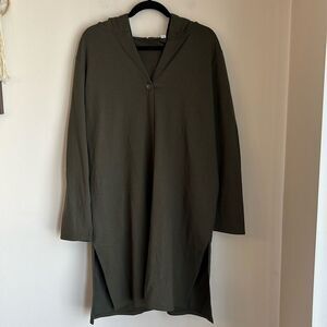 J. JILL WOMEN LONG HOODED POCKETS OLIVE GREEN CAPE ROBE JACKET XL EUC PIMA COTTON