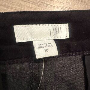 The product is a pair of J. Jill women's black velour pants in size 10 with a size zipper closure. These dress pants have a regular fit and are made of velour fabric, making them a stylish and comfortable option for any woman's wardrobe.