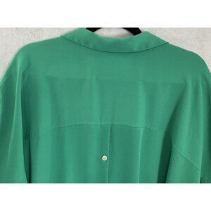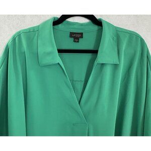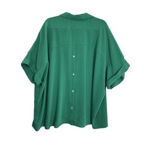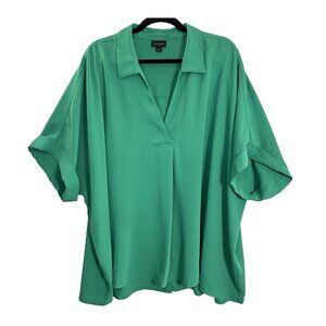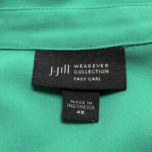 J JILL Wearever Women Pullover Top Button Back Collar V Neck Sz 4X Green 16-12