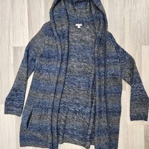 J. JILL Womens Blue Gray Knit Hooded Mid Length Open Front Wool Cardigan Small
