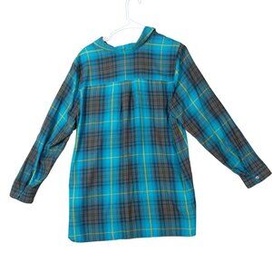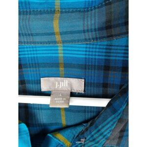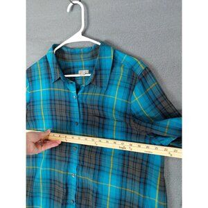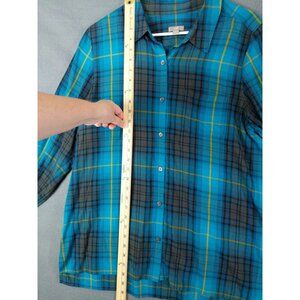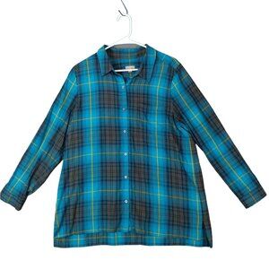 J. JILL Womens Button Up SZ L Plaid Turquoise Long Sleeve Boyfriend Grunge 90's