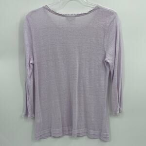 J. JILL Womens Love Linen Shirt Size M Lavender Textured Knit 3/4 Sleeve Pom Pom