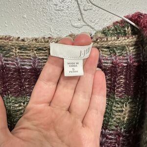 J. JILL Women's S Petite Wool Blend Knit Floral Embroidered Cardigan Sweater
