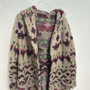 Great Pre-owned condition, minor pilling. Open front cardigan, comes with a large clip to hold the cardigan closed.