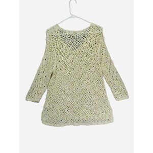 J JILL shirt top Crochet tunic Size L 3/4 Sleeve hippie boho casual Beach