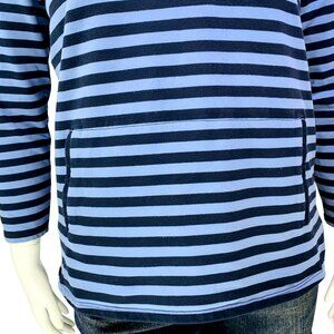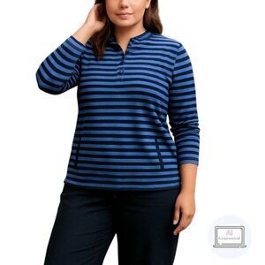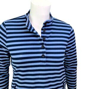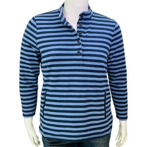 J JIll Fit Womens Elevate Terry Buttoned Popover Blue Stripe Mock Neck Petite L