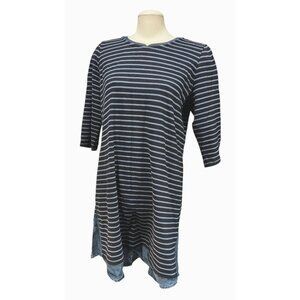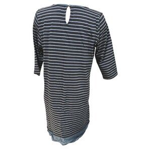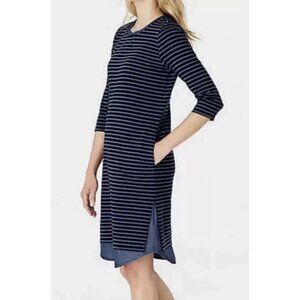 J. JIll Notched Neck Striped 3/4 Sleeve Casual Denim Lined Sheath Dress Sz Mediu
