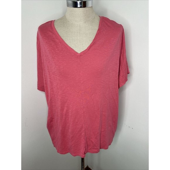 J JIll Pink T- Shirt Women's 4X Tunic Top V Neck Short Sleeve Pima Cotton