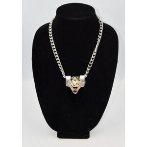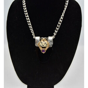 Bright vivid colors * Art Deco Style * Gold & Silver plated * Chain 20" Total length * 3" High x 2" Wide pendant