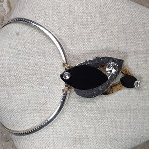 J Jansen Designs swarovski crystal/onyx/silver/gold plated slide pendant.