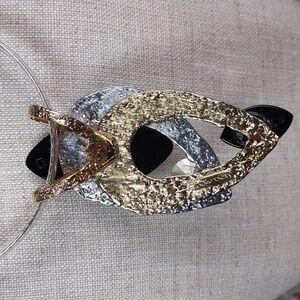 Custom designed, hand crafted non-tarnish silver/gold plate slide pendant features 2 leaf shaped black onyx stones and 3 clear swarovski crystals.