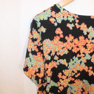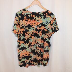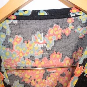 Keywords: J Jason Wu floral top, women’s XL blouse, multicolor floral shirt, black floral tee, designer casual top, feminine spring summer blouse