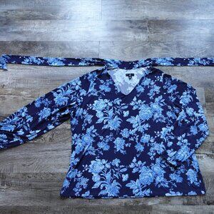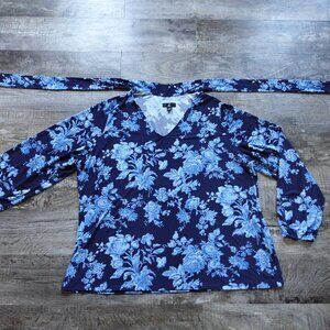 J Jason Wu Long Sleeve Mock Neck City Knit Blouse women's 2X blue floral