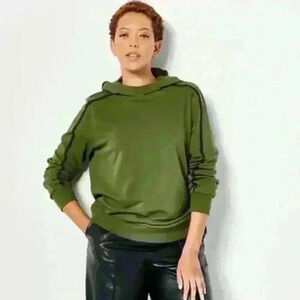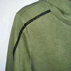J Jason Wu Olive Green Black Lace Trim Distressed Hoodie Sweatshirt Size Small