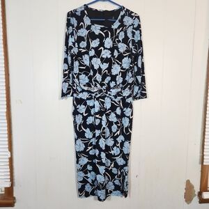 Dark blue, light blue and white floral 3/4 sleeve dress