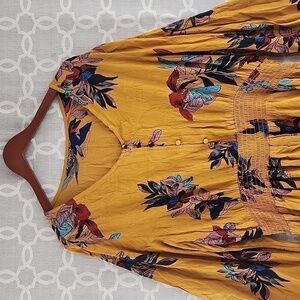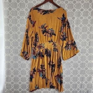 J. Jee V Neck Button Up Rayon Wide Sleeve Floral Mini Dress 2X